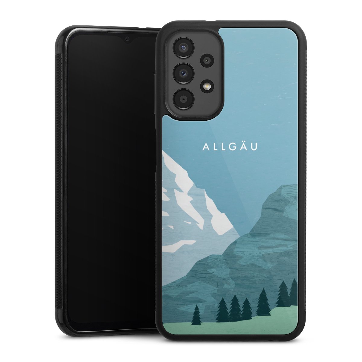 We print your design on the back of the glass inlay and then connect it firmly to the silicone case ,so that nothing sticks out and everything looks like it was cast from one piece. In addition, the sturdy glass element is protected from scratches by an additional coating and ensures a slight reflection on the shiny print image.
