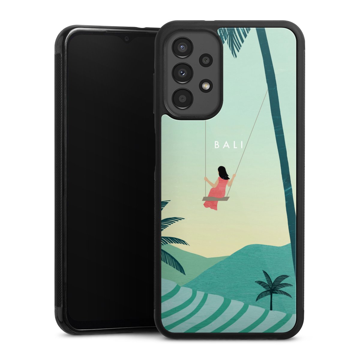 We print your design on the back of the glass inlay and then connect it firmly to the silicone case ,so that nothing sticks out and everything looks like it was cast from one piece. In addition, the sturdy glass element is protected from scratches by an additional coating and ensures a slight reflection on the shiny print image.