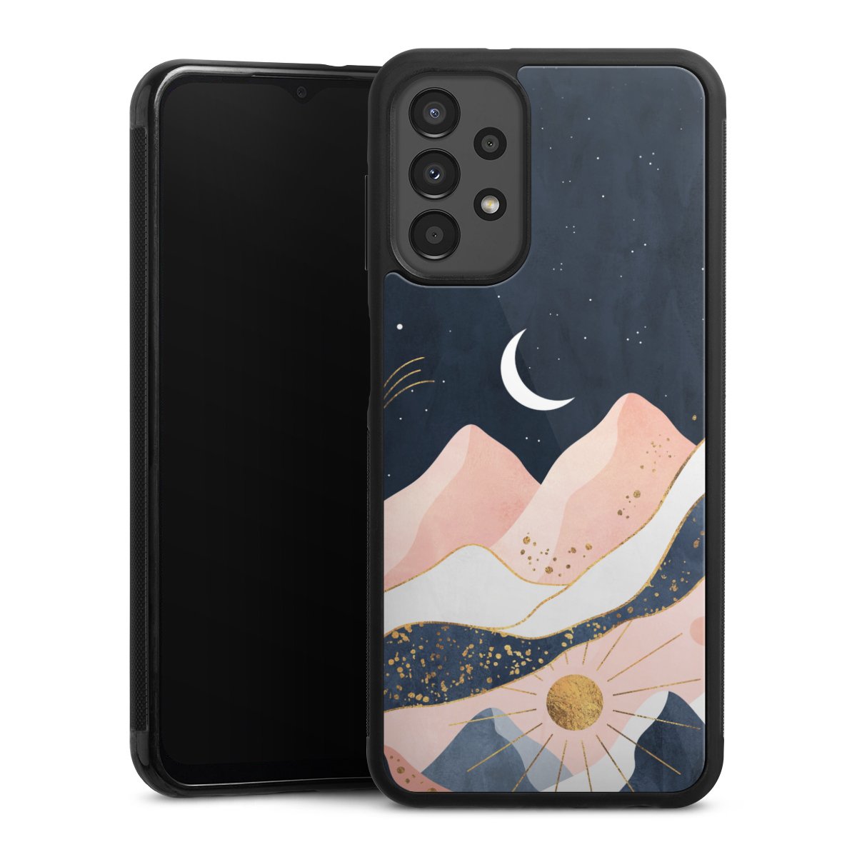 We print your design on the back of the glass inlay and then connect it firmly to the silicone case ,so that nothing sticks out and everything looks like it was cast from one piece. In addition, the sturdy glass element is protected from scratches by an additional coating and ensures a slight reflection on the shiny print image.