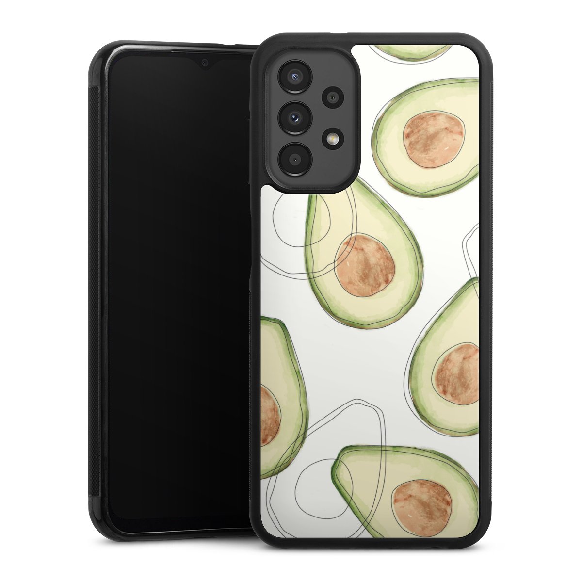 For this phone case, we use the solid direct printing process. The printing area covers the back of the glass plate, the edge of the case remains unprinted. The phone case can only be ordered fully printed. Choose for your design one of our exclusive designs or get creative and create your own design, for example with pictures and overlays. The choice is yours!
