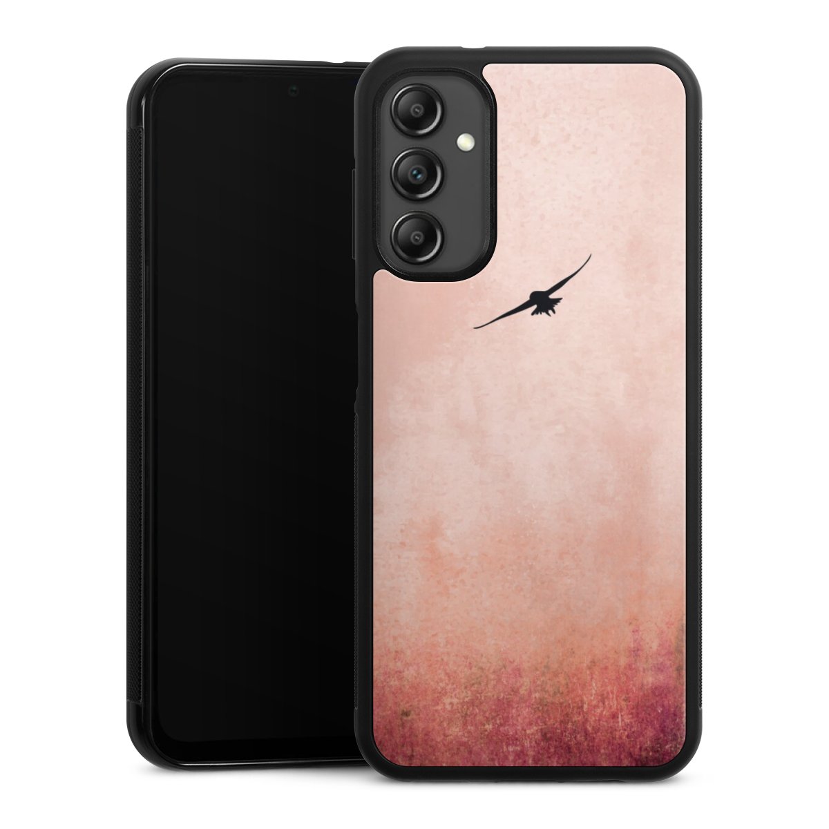 We print your design on the back of the glass inlay and then connect it firmly to the silicone case ,so that nothing sticks out and everything looks like it was cast from one piece. In addition, the sturdy glass element is protected from scratches by an additional coating and ensures a slight reflection on the shiny print image.