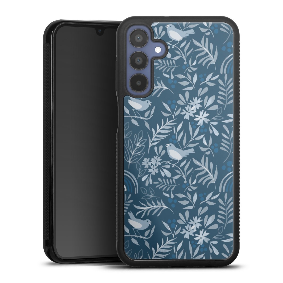 We print your design on the back of the glass inlay and then connect it firmly to the silicone case ,so that nothing sticks out and everything looks like it was cast from one piece. In addition, the sturdy glass element is protected from scratches by an additional coating and ensures a slight reflection on the shiny print image.