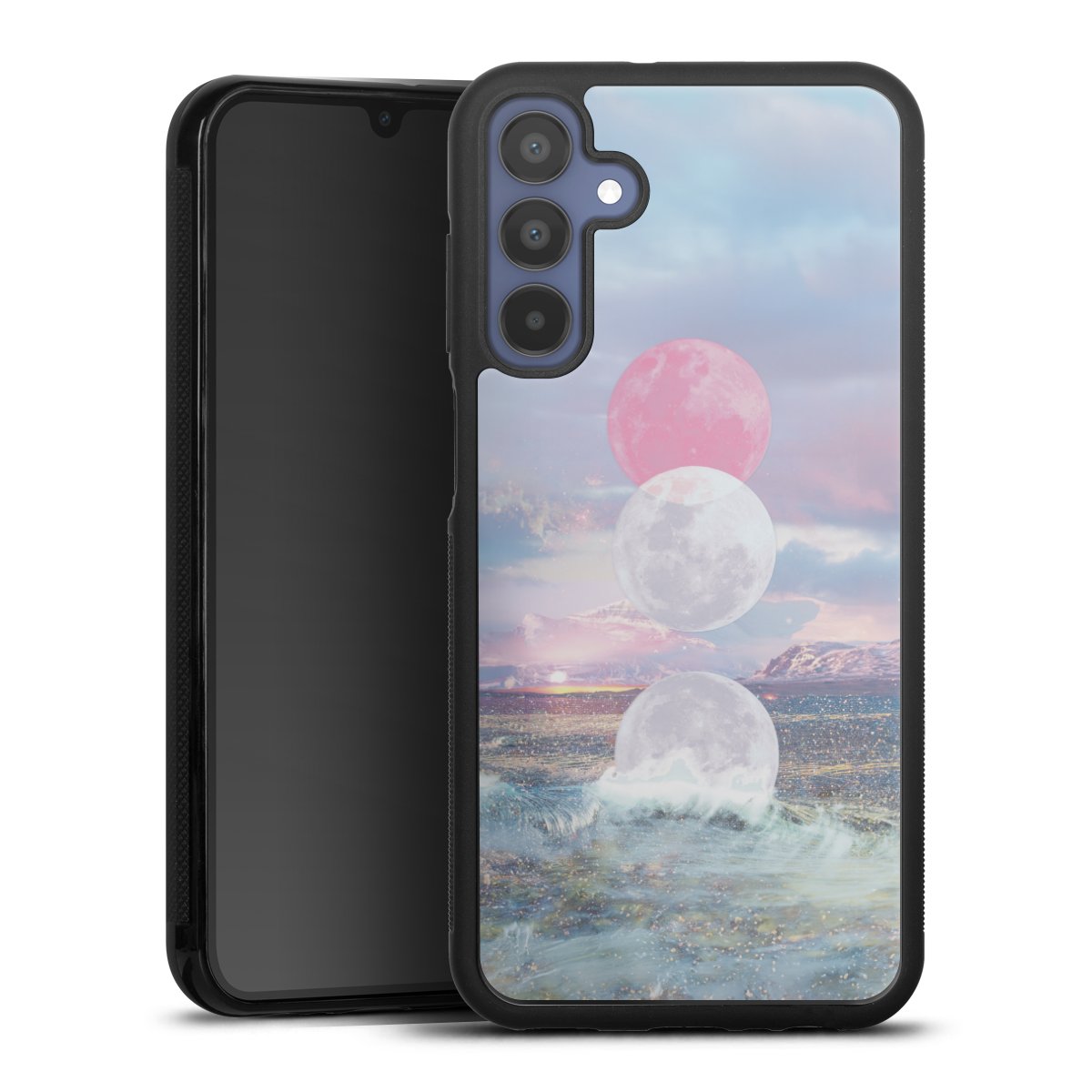 We print your design on the back of the glass inlay and then connect it firmly to the silicone case ,so that nothing sticks out and everything looks like it was cast from one piece. In addition, the sturdy glass element is protected from scratches by an additional coating and ensures a slight reflection on the shiny print image.