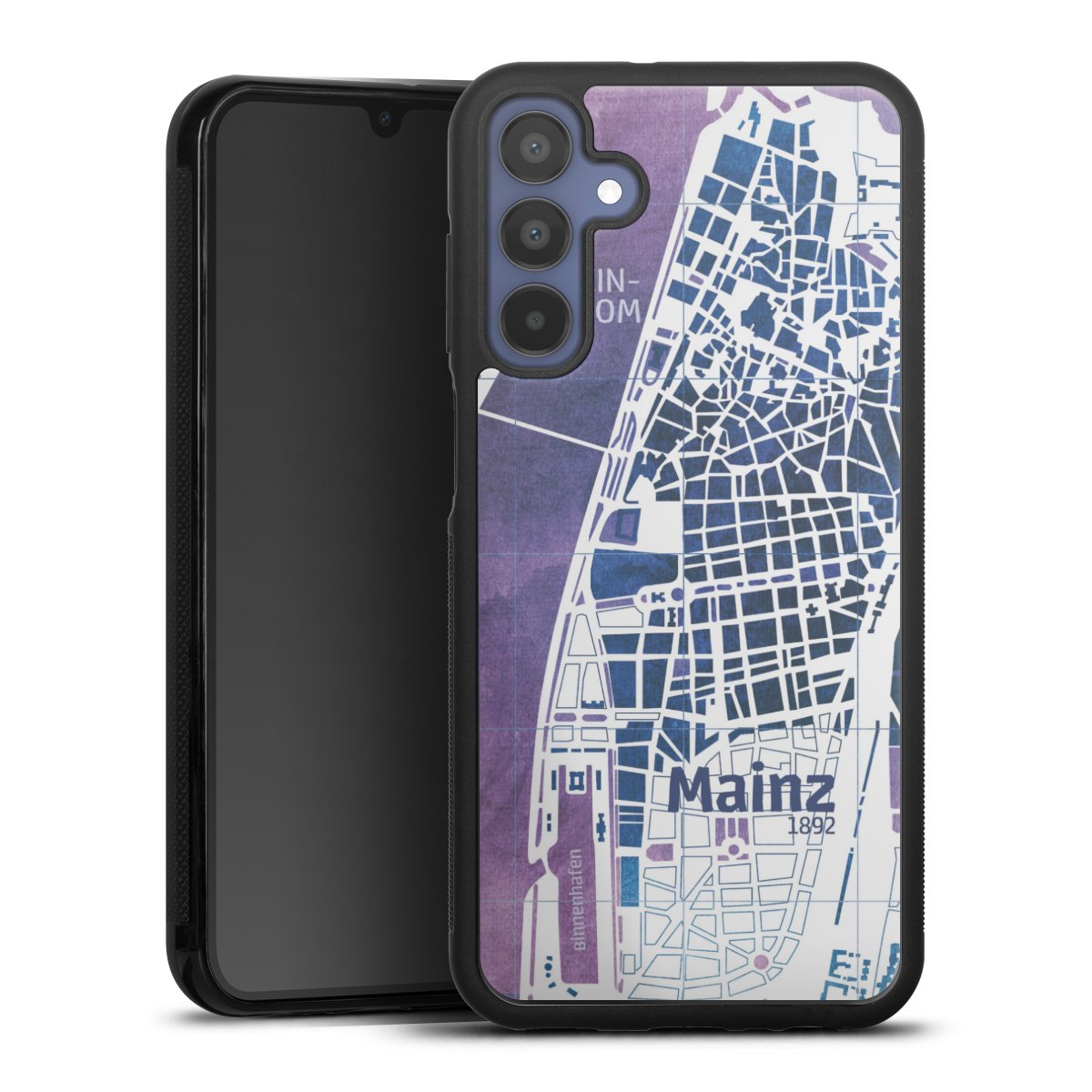 We print your design on the back of the glass inlay and then connect it firmly to the silicone case ,so that nothing sticks out and everything looks like it was cast from one piece. In addition, the sturdy glass element is protected from scratches by an additional coating and ensures a slight reflection on the shiny print image.