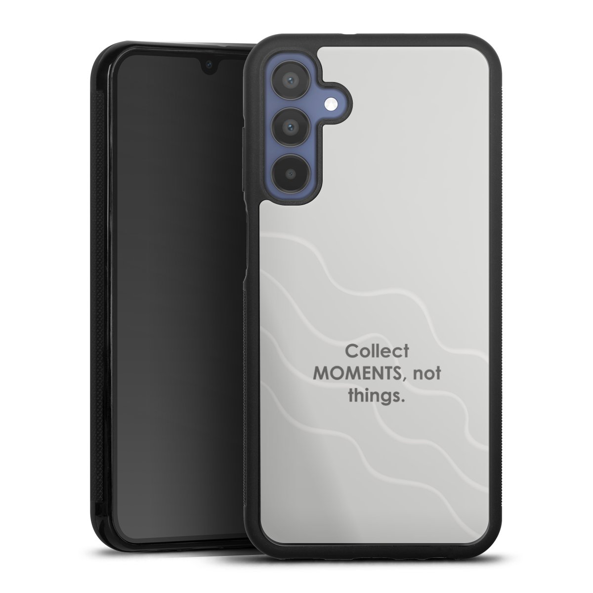The contrast between the matte black TPU on the sides and the glossy glass surface not only makes the Gallery Case a fest for the eyes, but also a real treat for the hands: The glass gives the phone a pleasantly smooth back and the soft silicone edge provides the necessary grip.