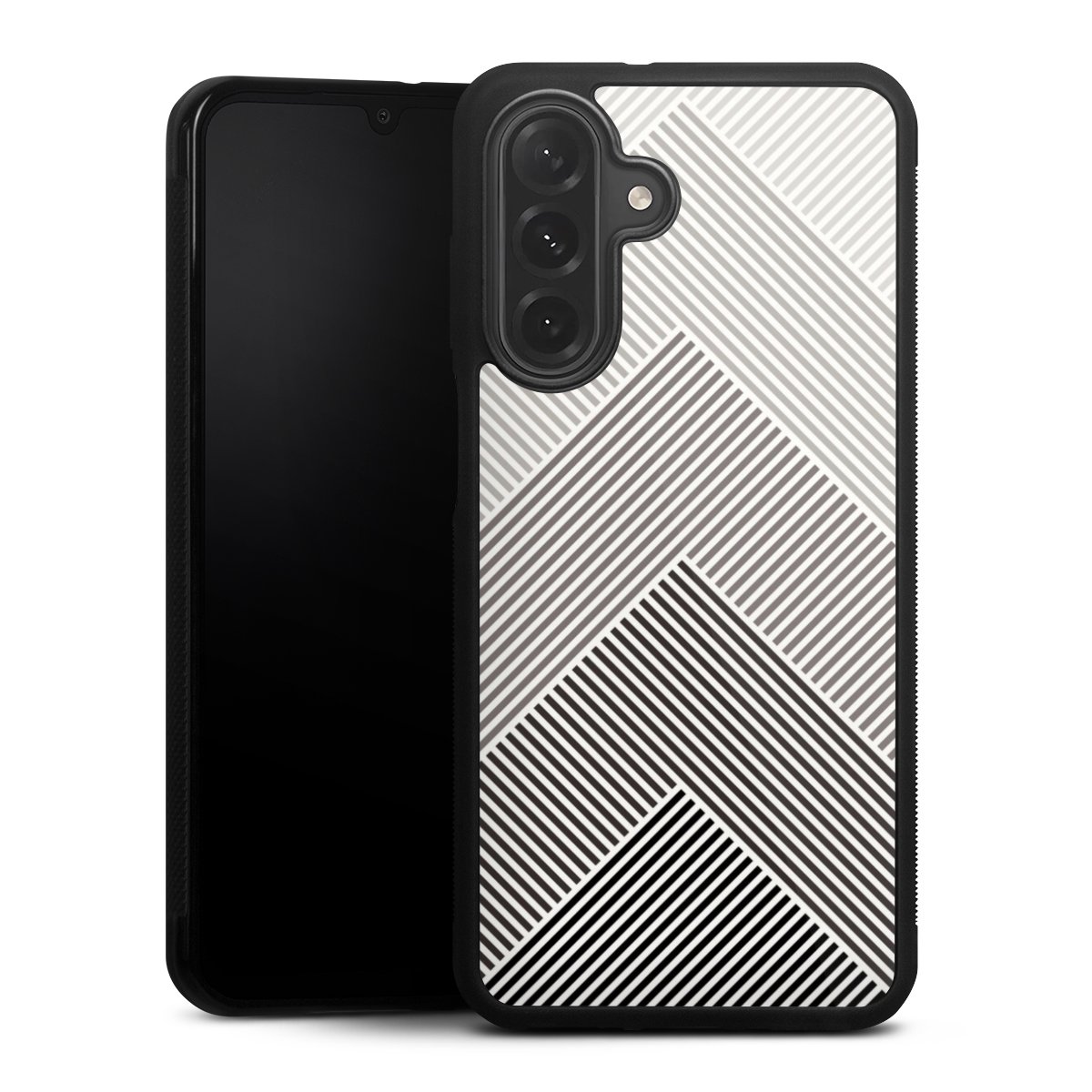 The contrast between the matte black TPU on the sides and the glossy glass surface not only makes the Gallery Case a fest for the eyes, but also a real treat for the hands: The glass gives the phone a pleasantly smooth back and the soft silicone edge provides the necessary grip.