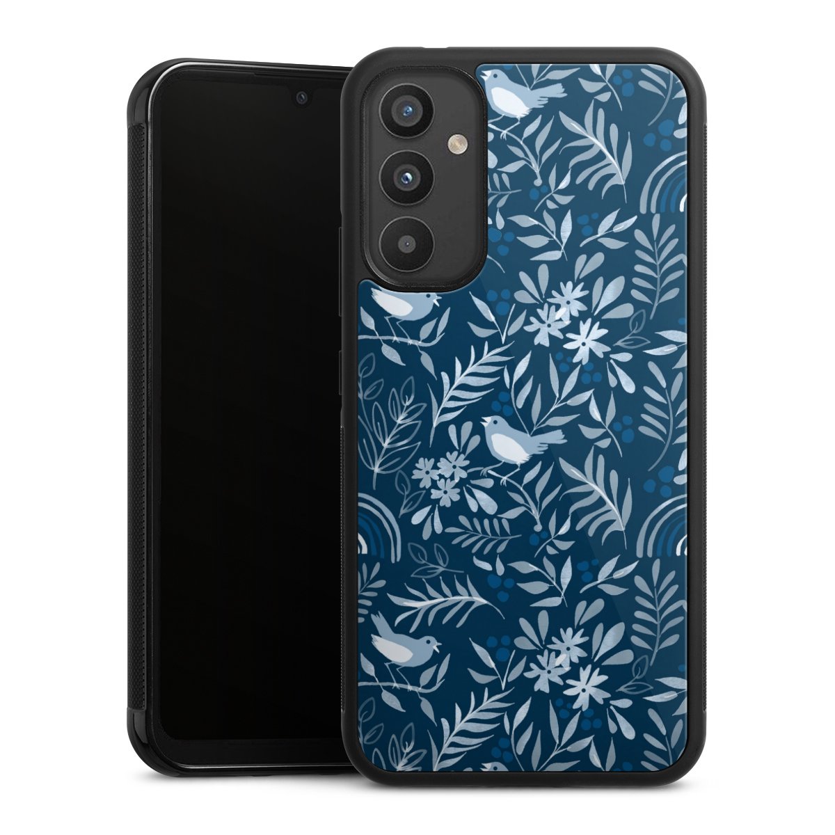 We print your design on the back of the glass inlay and then connect it firmly to the silicone case ,so that nothing sticks out and everything looks like it was cast from one piece. In addition, the sturdy glass element is protected from scratches by an additional coating and ensures a slight reflection on the shiny print image.