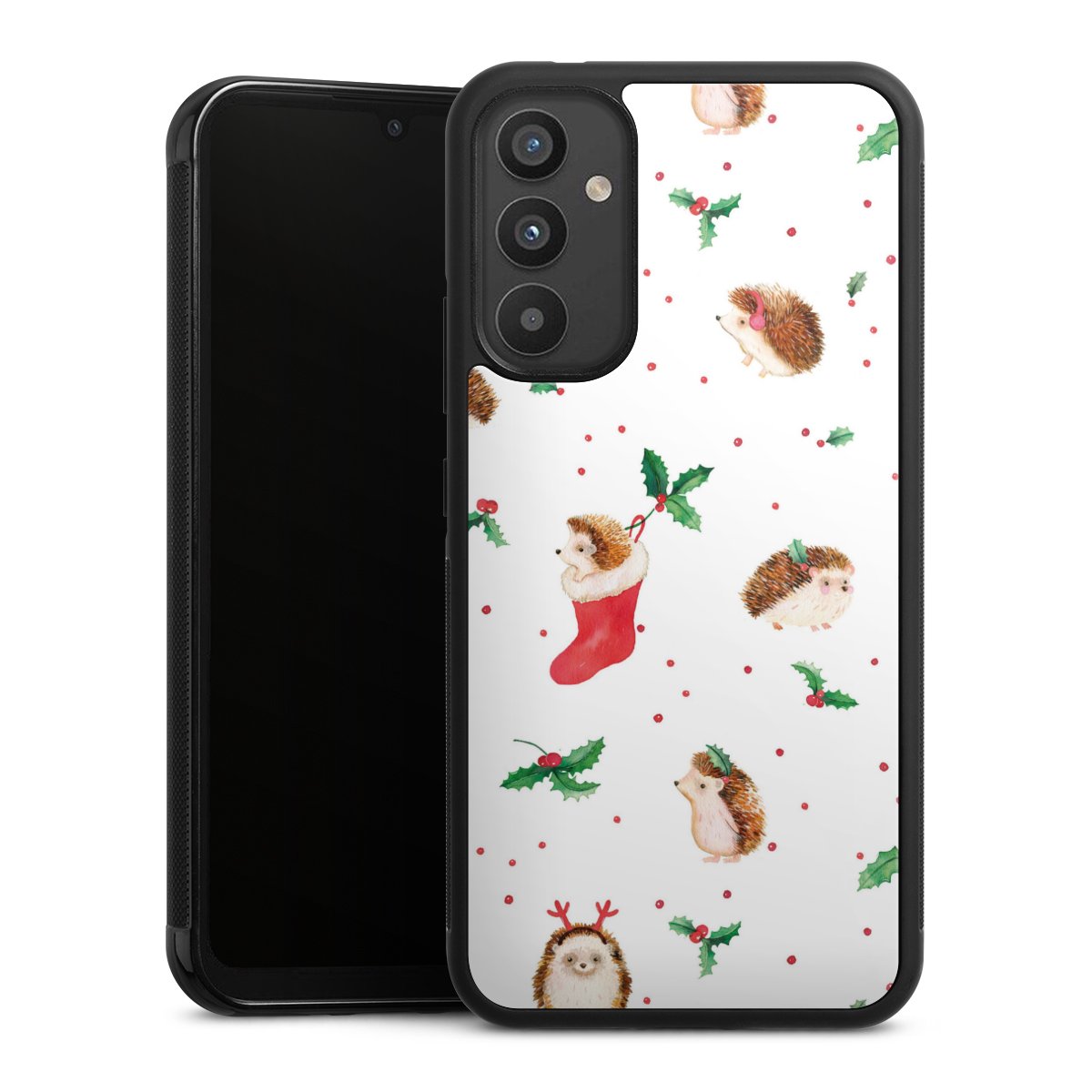 We print your design on the back of the glass inlay and then connect it firmly to the silicone case ,so that nothing sticks out and everything looks like it was cast from one piece. In addition, the sturdy glass element is protected from scratches by an additional coating and ensures a slight reflection on the shiny print image.