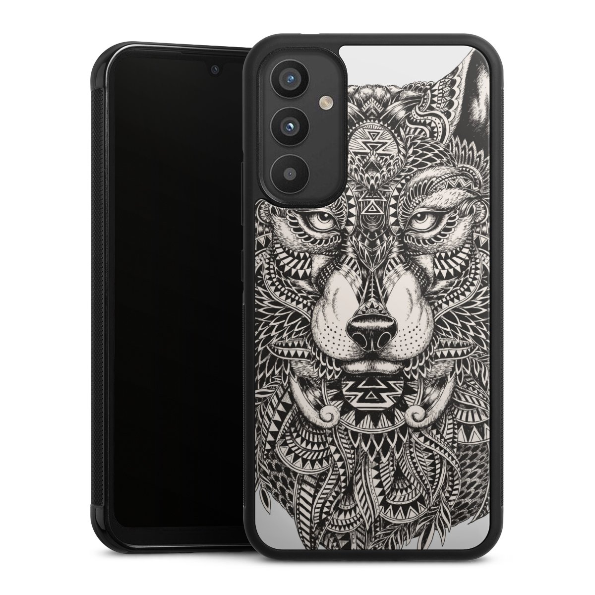 We print your design on the back of the glass inlay and then connect it firmly to the silicone case ,so that nothing sticks out and everything looks like it was cast from one piece. In addition, the sturdy glass element is protected from scratches by an additional coating and ensures a slight reflection on the shiny print image.