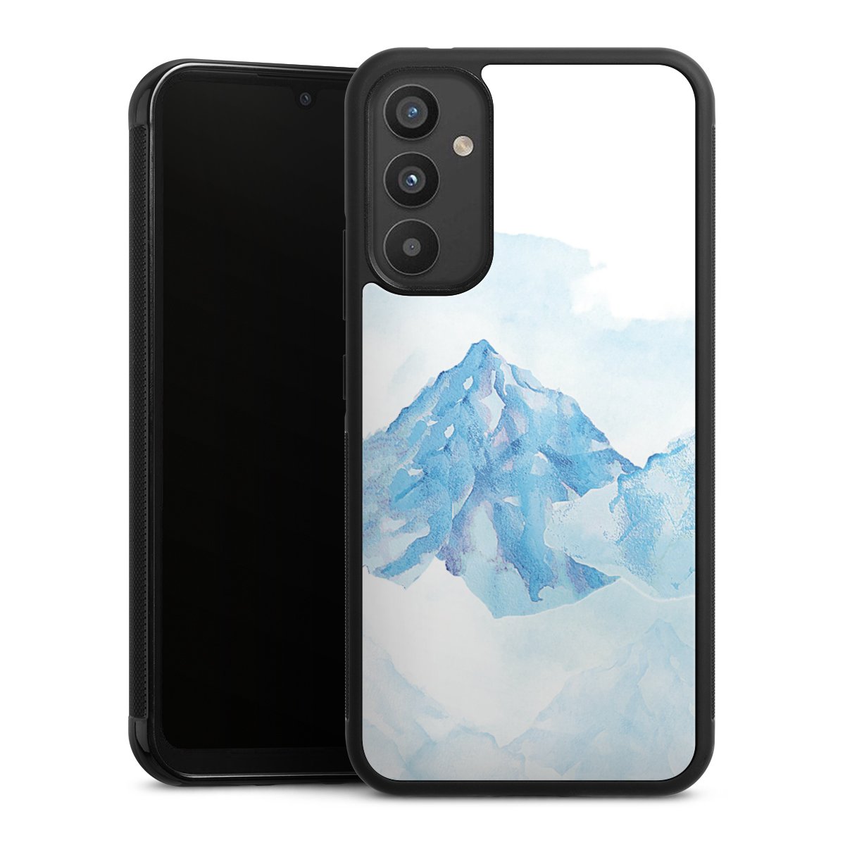 We print your design on the back of the glass inlay and then connect it firmly to the silicone case ,so that nothing sticks out and everything looks like it was cast from one piece. In addition, the sturdy glass element is protected from scratches by an additional coating and ensures a slight reflection on the shiny print image.