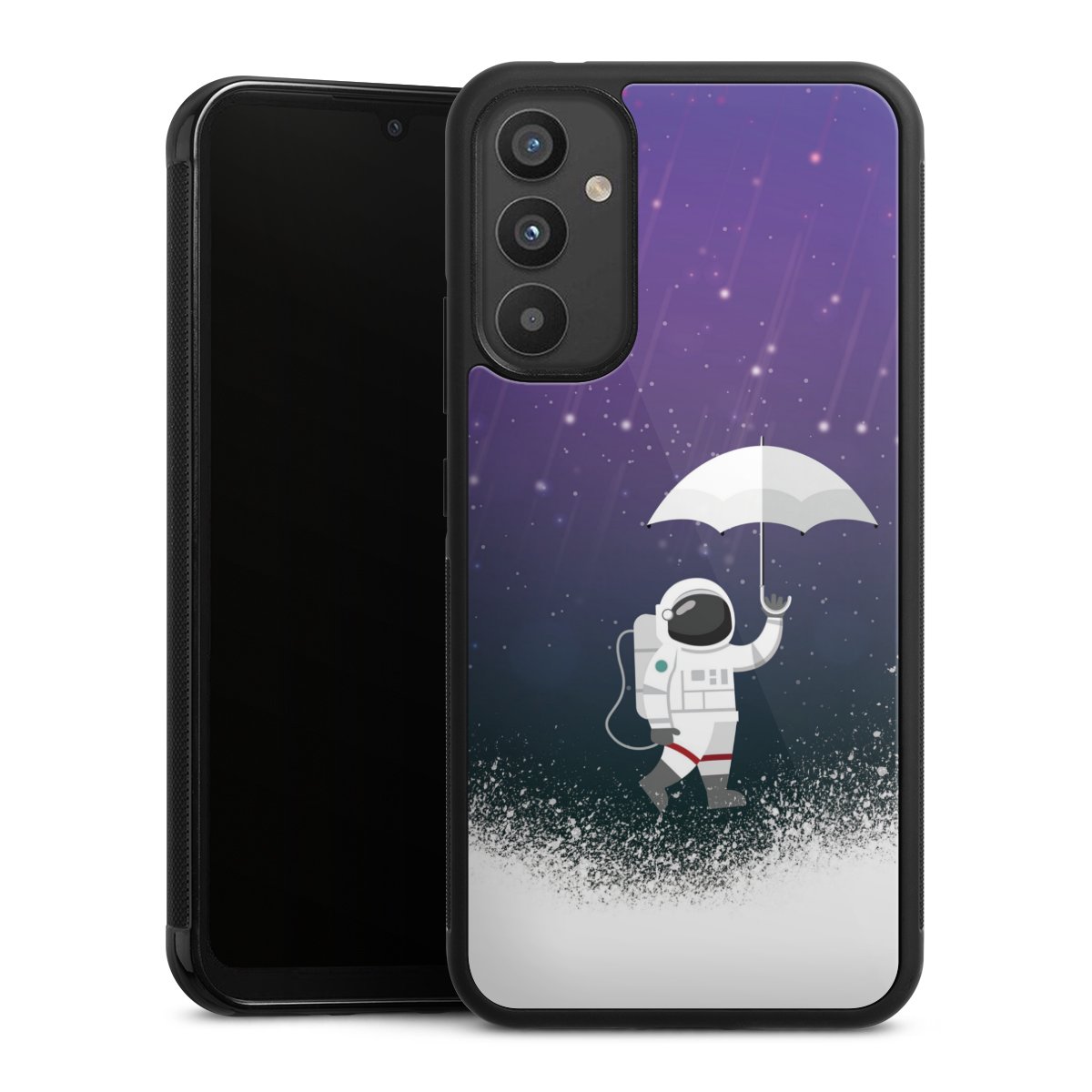 We print your design on the back of the glass inlay and then connect it firmly to the silicone case ,so that nothing sticks out and everything looks like it was cast from one piece. In addition, the sturdy glass element is protected from scratches by an additional coating and ensures a slight reflection on the shiny print image.