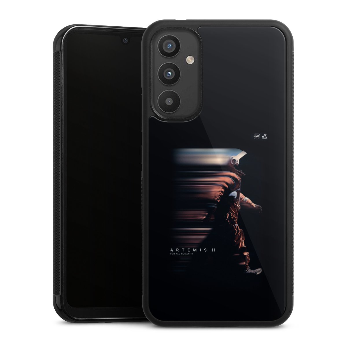 We print your design on the back of the glass inlay and then connect it firmly to the silicone case ,so that nothing sticks out and everything looks like it was cast from one piece. In addition, the sturdy glass element is protected from scratches by an additional coating and ensures a slight reflection on the shiny print image.