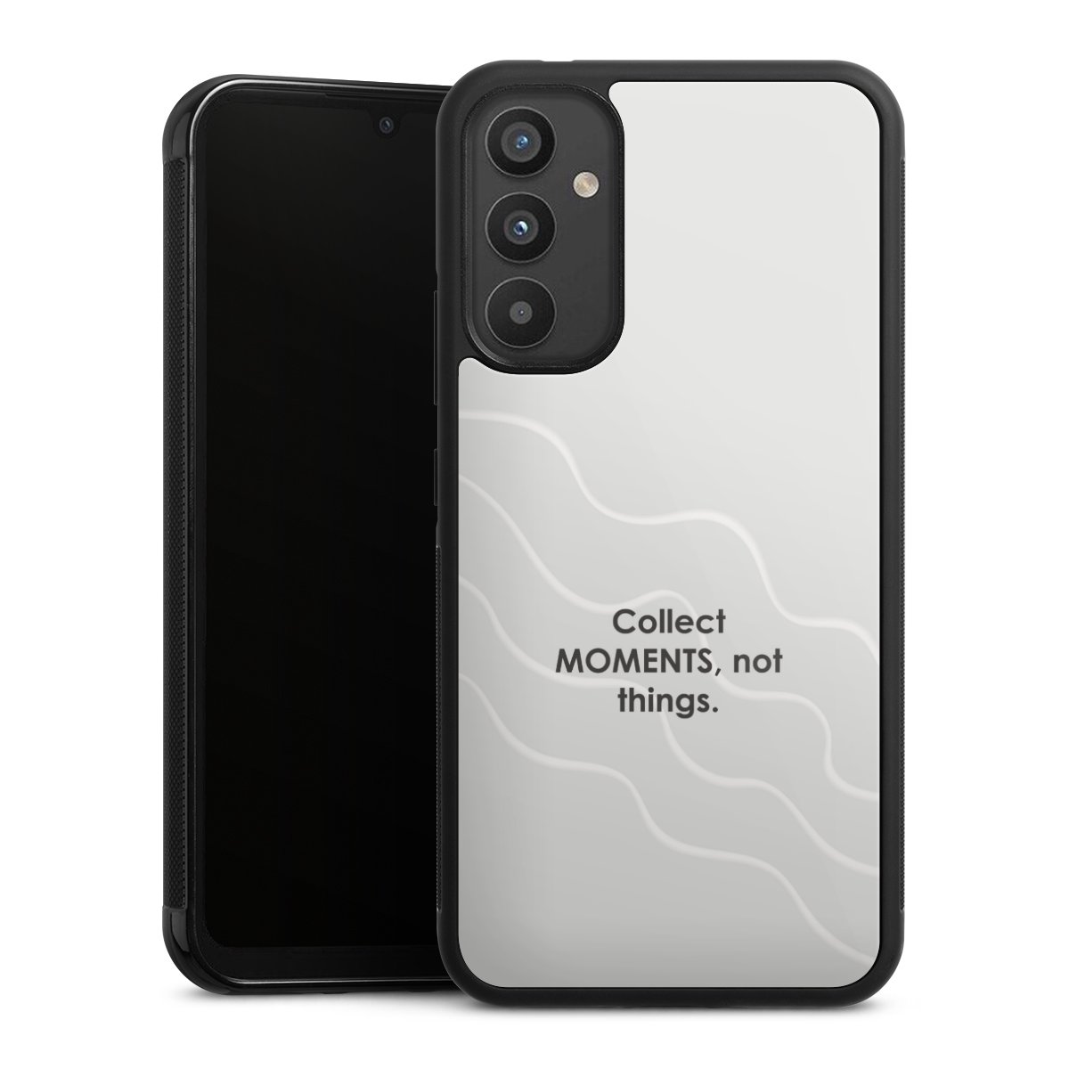 The contrast between the matte black TPU on the sides and the glossy glass surface not only makes the Gallery Case a fest for the eyes, but also a real treat for the hands: The glass gives the phone a pleasantly smooth back and the soft silicone edge provides the necessary grip.