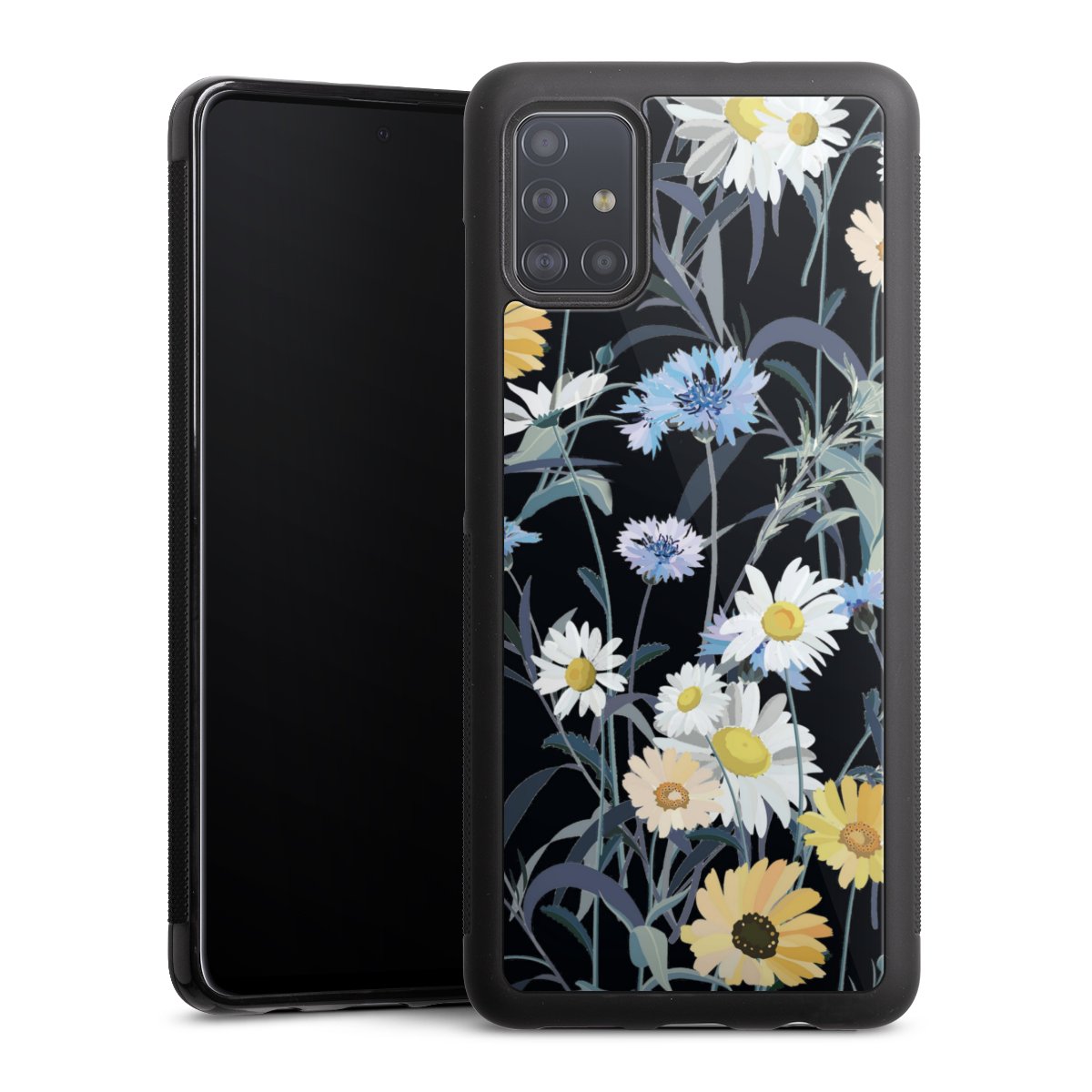 We print your design on the back of the glass inlay and then connect it firmly to the silicone case ,so that nothing sticks out and everything looks like it was cast from one piece. In addition, the sturdy glass element is protected from scratches by an additional coating and ensures a slight reflection on the shiny print image.