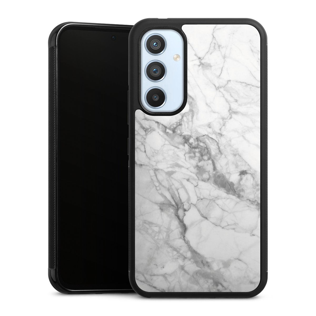 The contrast between the matte black TPU on the sides and the glossy glass surface not only makes the Gallery Case a fest for the eyes, but also a real treat for the hands: The glass gives the phone a pleasantly smooth back and the soft silicone edge provides the necessary grip.
