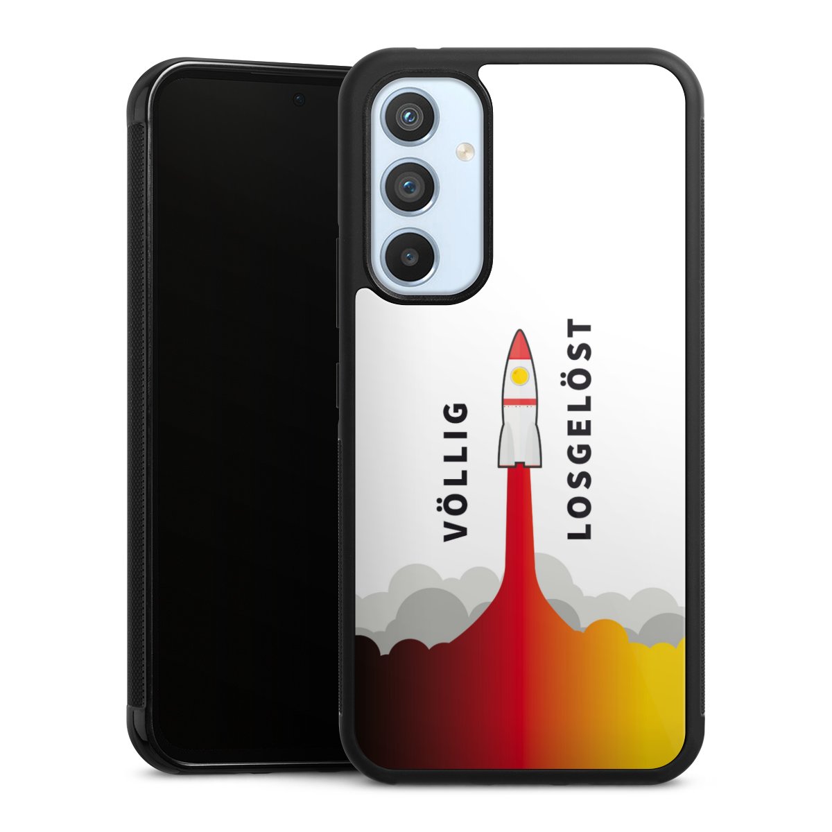 We print your design on the back of the glass inlay and then connect it firmly to the silicone case ,so that nothing sticks out and everything looks like it was cast from one piece. In addition, the sturdy glass element is protected from scratches by an additional coating and ensures a slight reflection on the shiny print image.