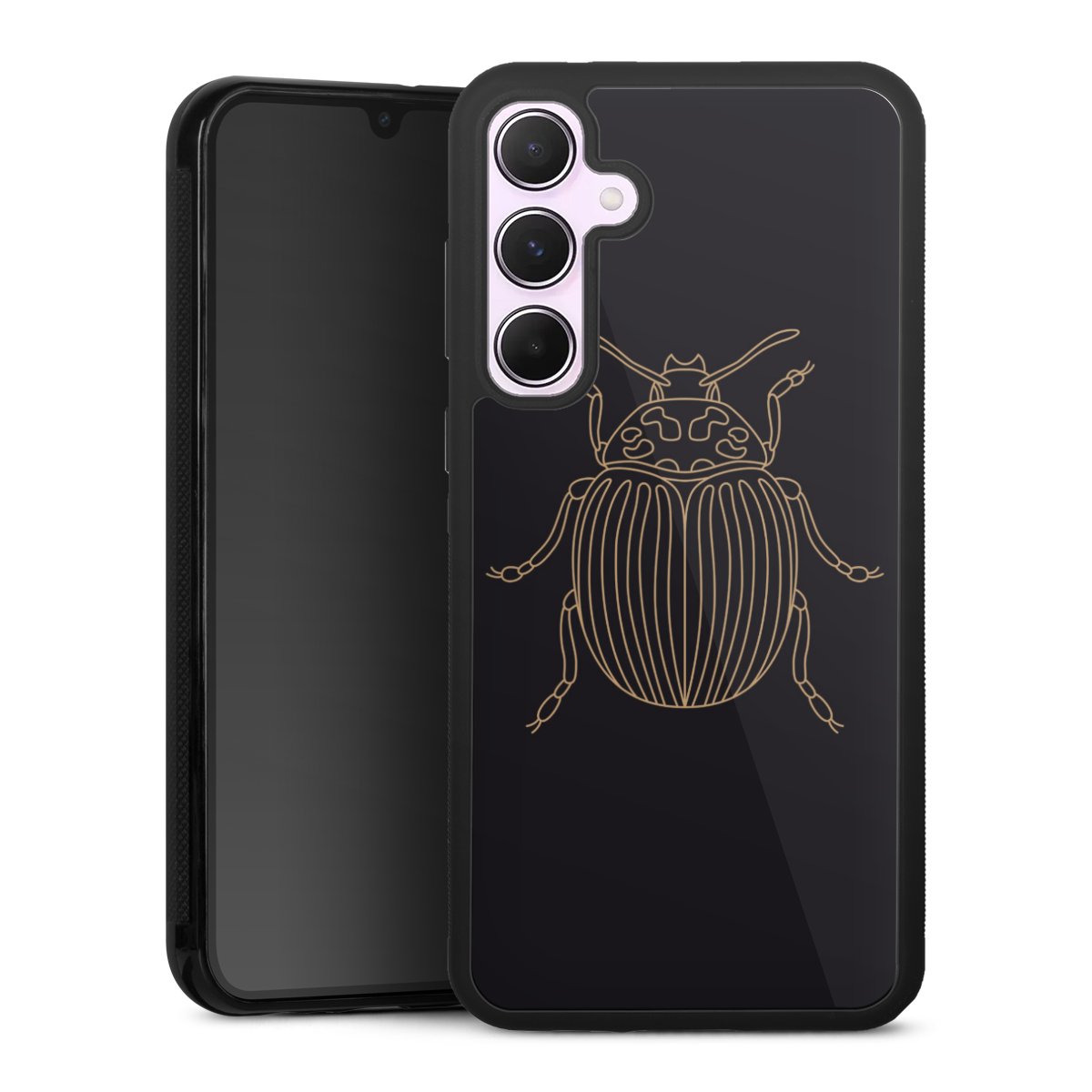 We print your design on the back of the glass inlay and then connect it firmly to the silicone case ,so that nothing sticks out and everything looks like it was cast from one piece. In addition, the sturdy glass element is protected from scratches by an additional coating and ensures a slight reflection on the shiny print image.