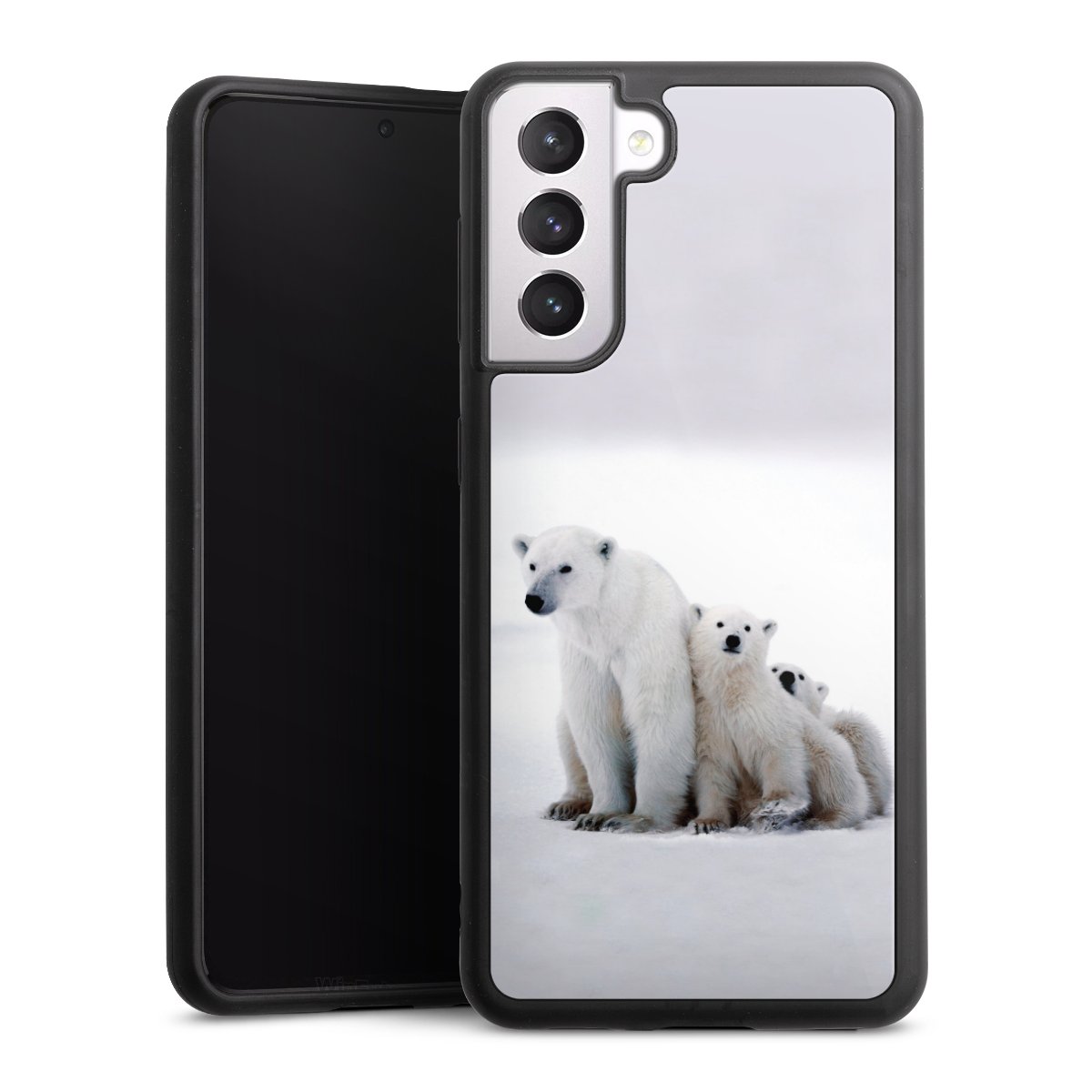 We print your design on the back of the glass inlay and then connect it firmly to the silicone case ,so that nothing sticks out and everything looks like it was cast from one piece. In addition, the sturdy glass element is protected from scratches by an additional coating and ensures a slight reflection on the shiny print image.
