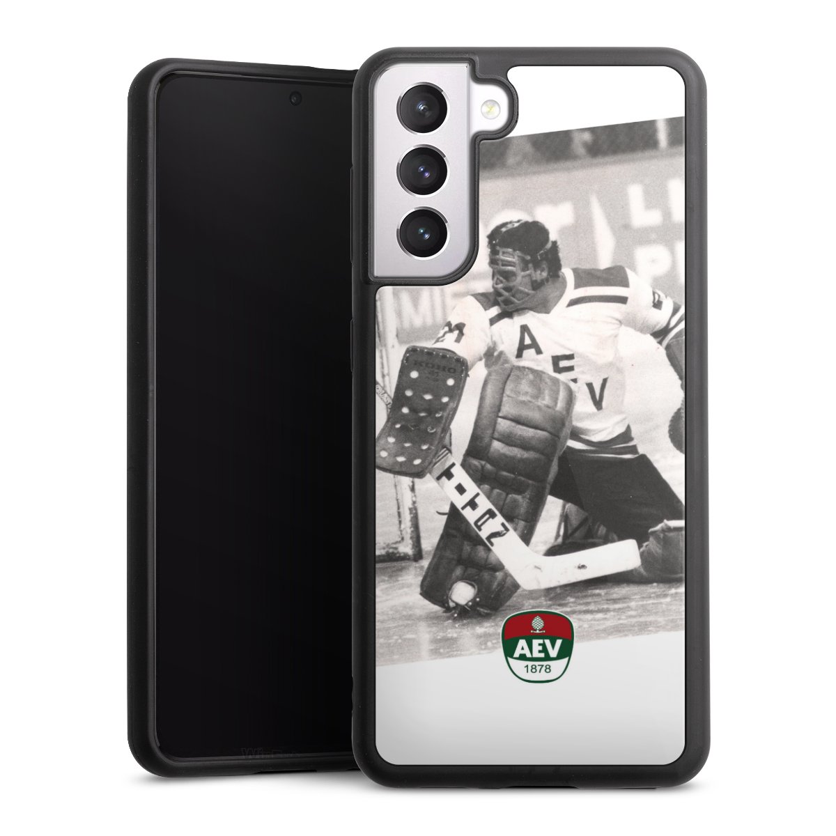 We print your design on the back of the glass inlay and then connect it firmly to the silicone case ,so that nothing sticks out and everything looks like it was cast from one piece. In addition, the sturdy glass element is protected from scratches by an additional coating and ensures a slight reflection on the shiny print image.
