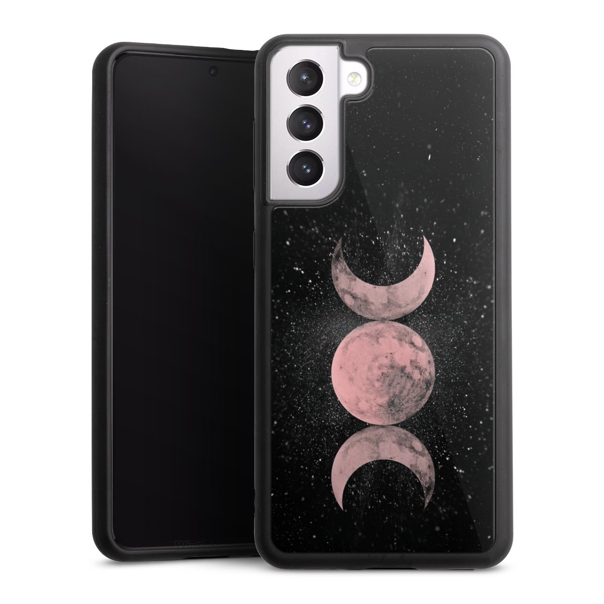 We print your design on the back of the glass inlay and then connect it firmly to the silicone case ,so that nothing sticks out and everything looks like it was cast from one piece. In addition, the sturdy glass element is protected from scratches by an additional coating and ensures a slight reflection on the shiny print image.