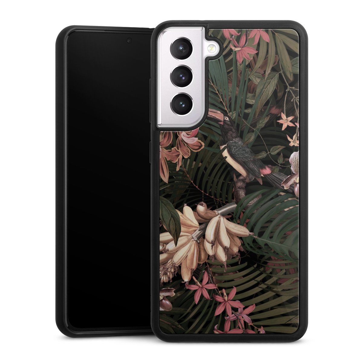 We print your design on the back of the glass inlay and then connect it firmly to the silicone case ,so that nothing sticks out and everything looks like it was cast from one piece. In addition, the sturdy glass element is protected from scratches by an additional coating and ensures a slight reflection on the shiny print image.