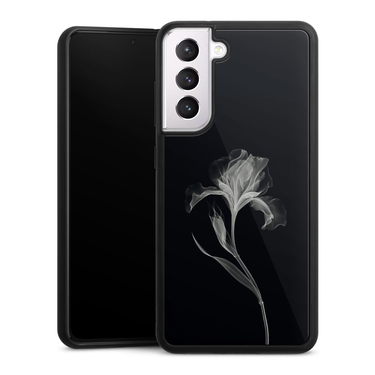 We print your design on the back of the glass inlay and then connect it firmly to the silicone case ,so that nothing sticks out and everything looks like it was cast from one piece. In addition, the sturdy glass element is protected from scratches by an additional coating and ensures a slight reflection on the shiny print image.