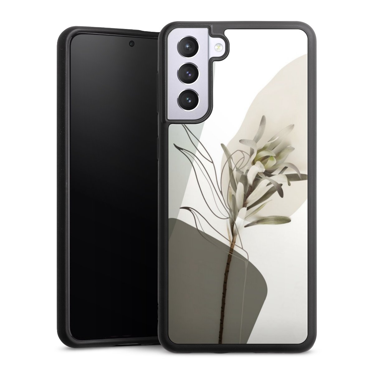 We print your design on the back of the glass inlay and then connect it firmly to the silicone case ,so that nothing sticks out and everything looks like it was cast from one piece. In addition, the sturdy glass element is protected from scratches by an additional coating and ensures a slight reflection on the shiny print image.