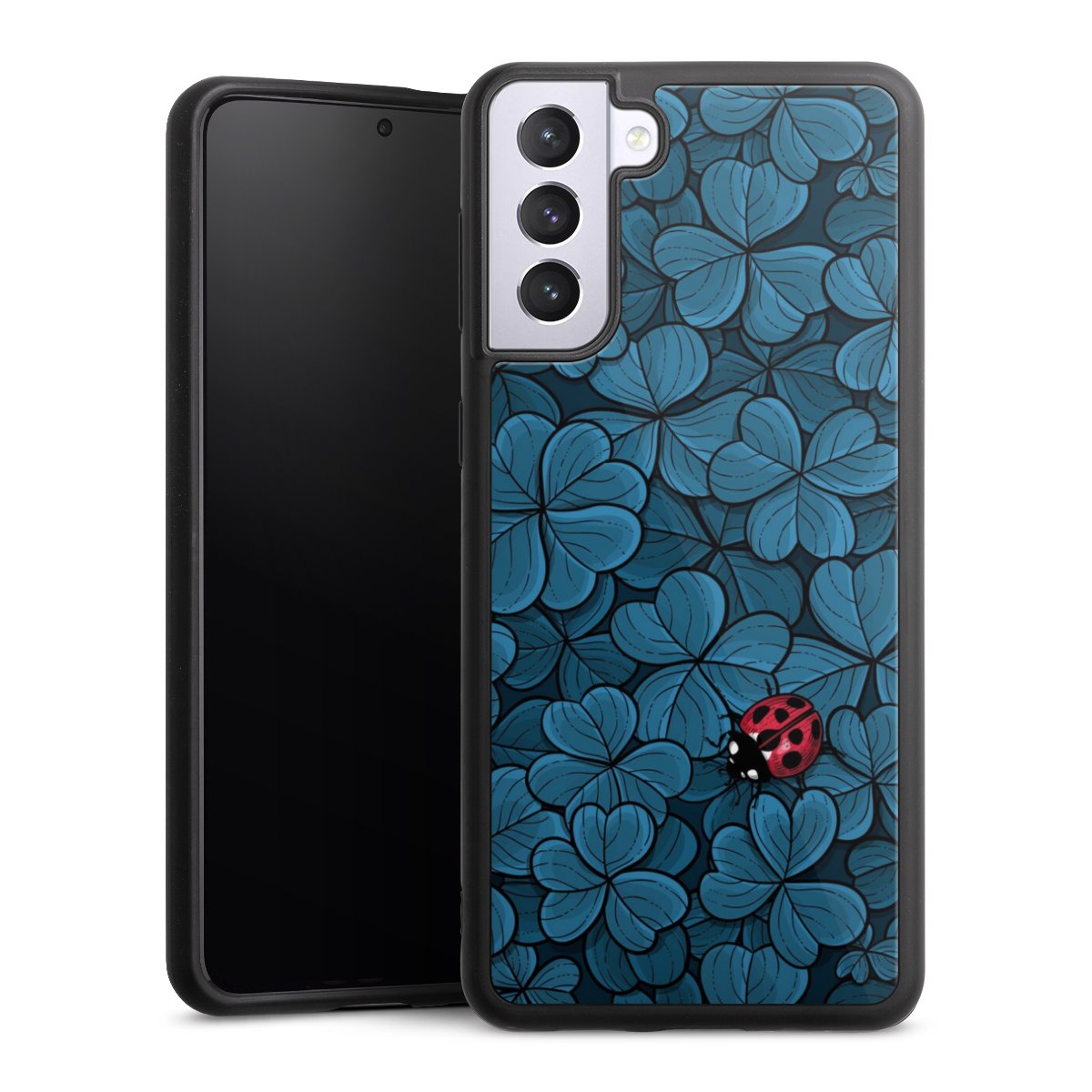 We print your design on the back of the glass inlay and then connect it firmly to the silicone case ,so that nothing sticks out and everything looks like it was cast from one piece. In addition, the sturdy glass element is protected from scratches by an additional coating and ensures a slight reflection on the shiny print image.