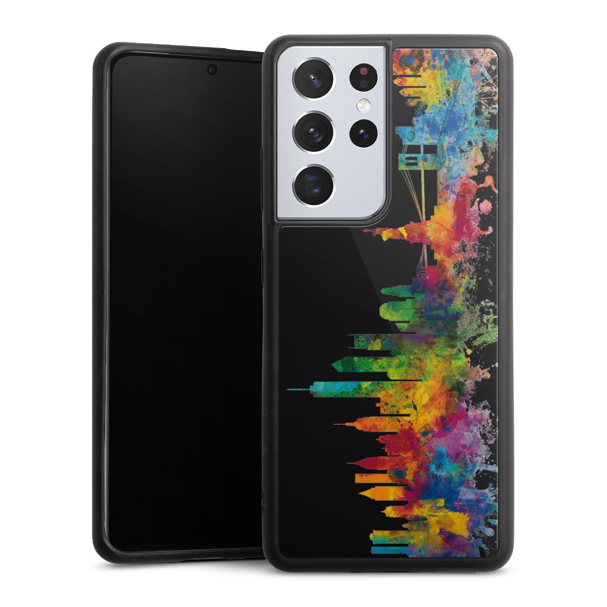 We print your design on the back of the glass inlay and then connect it firmly to the silicone case ,so that nothing sticks out and everything looks like it was cast from one piece. In addition, the sturdy glass element is protected from scratches by an additional coating and ensures a slight reflection on the shiny print image.