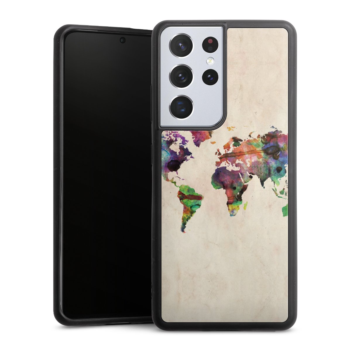 We print your design on the back of the glass inlay and then connect it firmly to the silicone case ,so that nothing sticks out and everything looks like it was cast from one piece. In addition, the sturdy glass element is protected from scratches by an additional coating and ensures a slight reflection on the shiny print image.