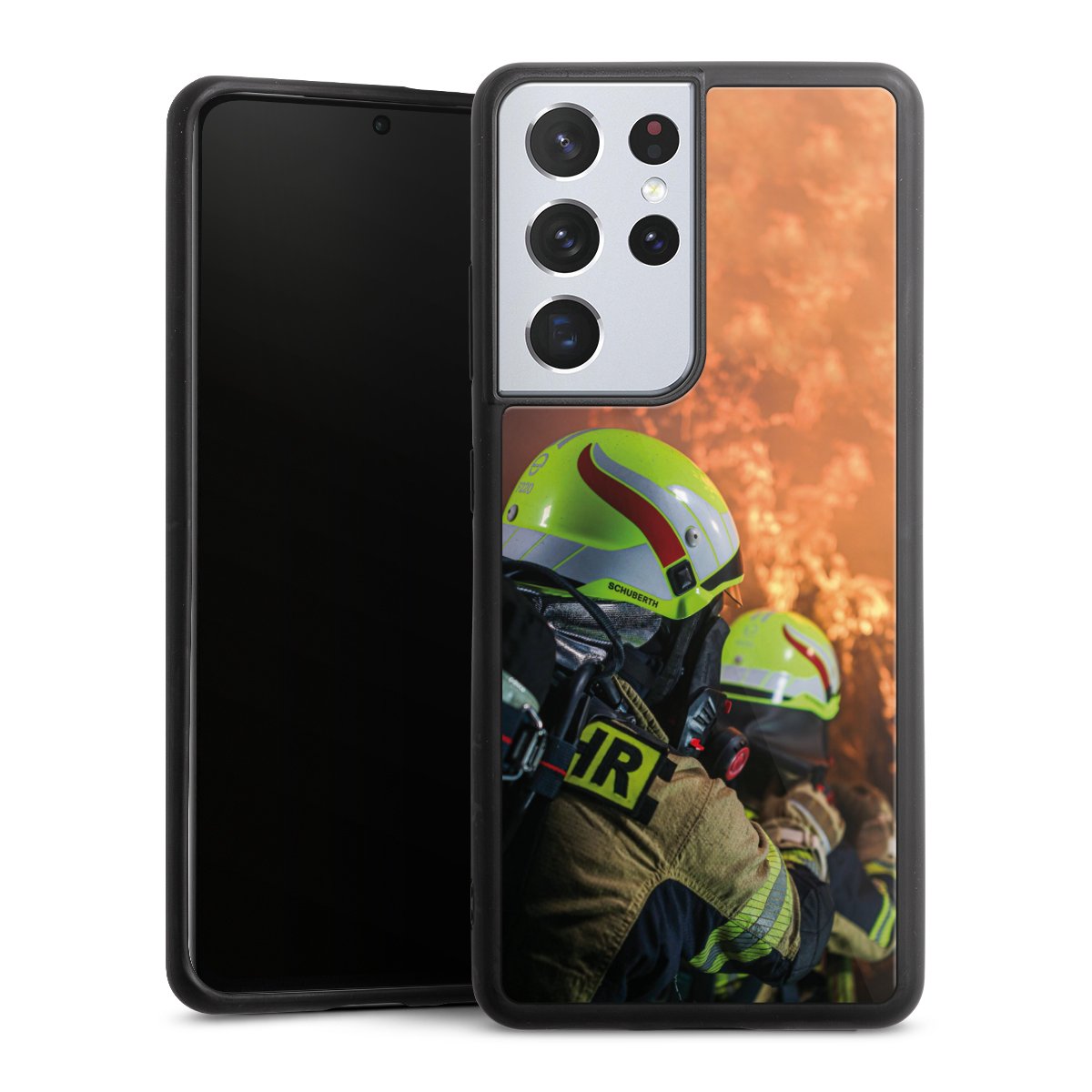 We print your design on the back of the glass inlay and then connect it firmly to the silicone case ,so that nothing sticks out and everything looks like it was cast from one piece. In addition, the sturdy glass element is protected from scratches by an additional coating and ensures a slight reflection on the shiny print image.