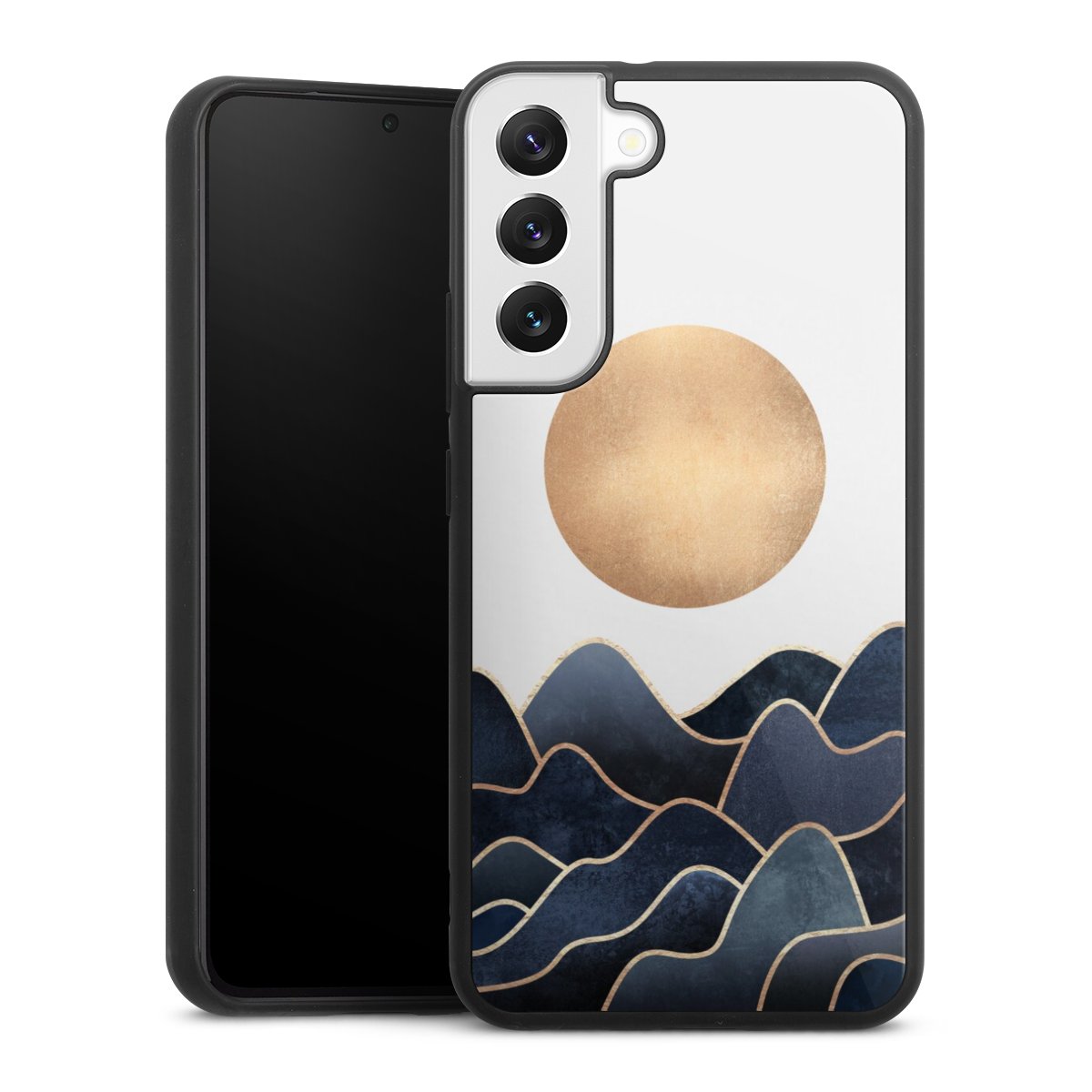 We print your design on the back of the glass inlay and then connect it firmly to the silicone case ,so that nothing sticks out and everything looks like it was cast from one piece. In addition, the sturdy glass element is protected from scratches by an additional coating and ensures a slight reflection on the shiny print image.