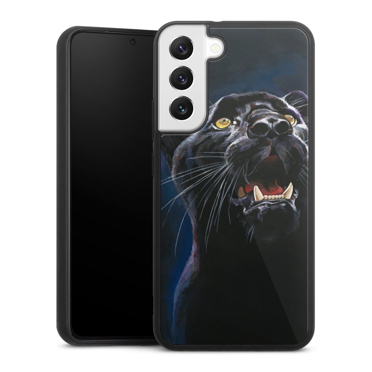 We print your design on the back of the glass inlay and then connect it firmly to the silicone case ,so that nothing sticks out and everything looks like it was cast from one piece. In addition, the sturdy glass element is protected from scratches by an additional coating and ensures a slight reflection on the shiny print image.