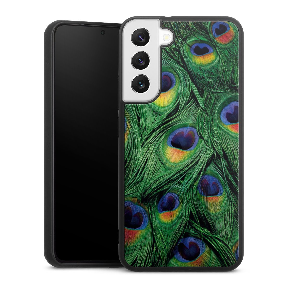 We print your design on the back of the glass inlay and then connect it firmly to the silicone case ,so that nothing sticks out and everything looks like it was cast from one piece. In addition, the sturdy glass element is protected from scratches by an additional coating and ensures a slight reflection on the shiny print image.
