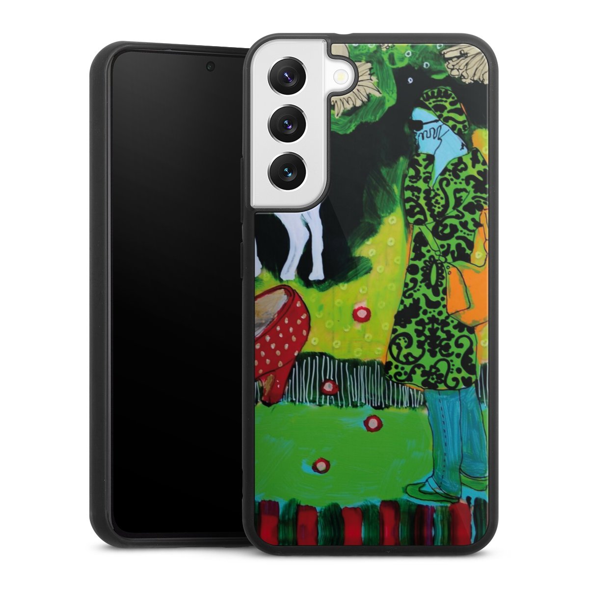 We print your design on the back of the glass inlay and then connect it firmly to the silicone case ,so that nothing sticks out and everything looks like it was cast from one piece. In addition, the sturdy glass element is protected from scratches by an additional coating and ensures a slight reflection on the shiny print image.