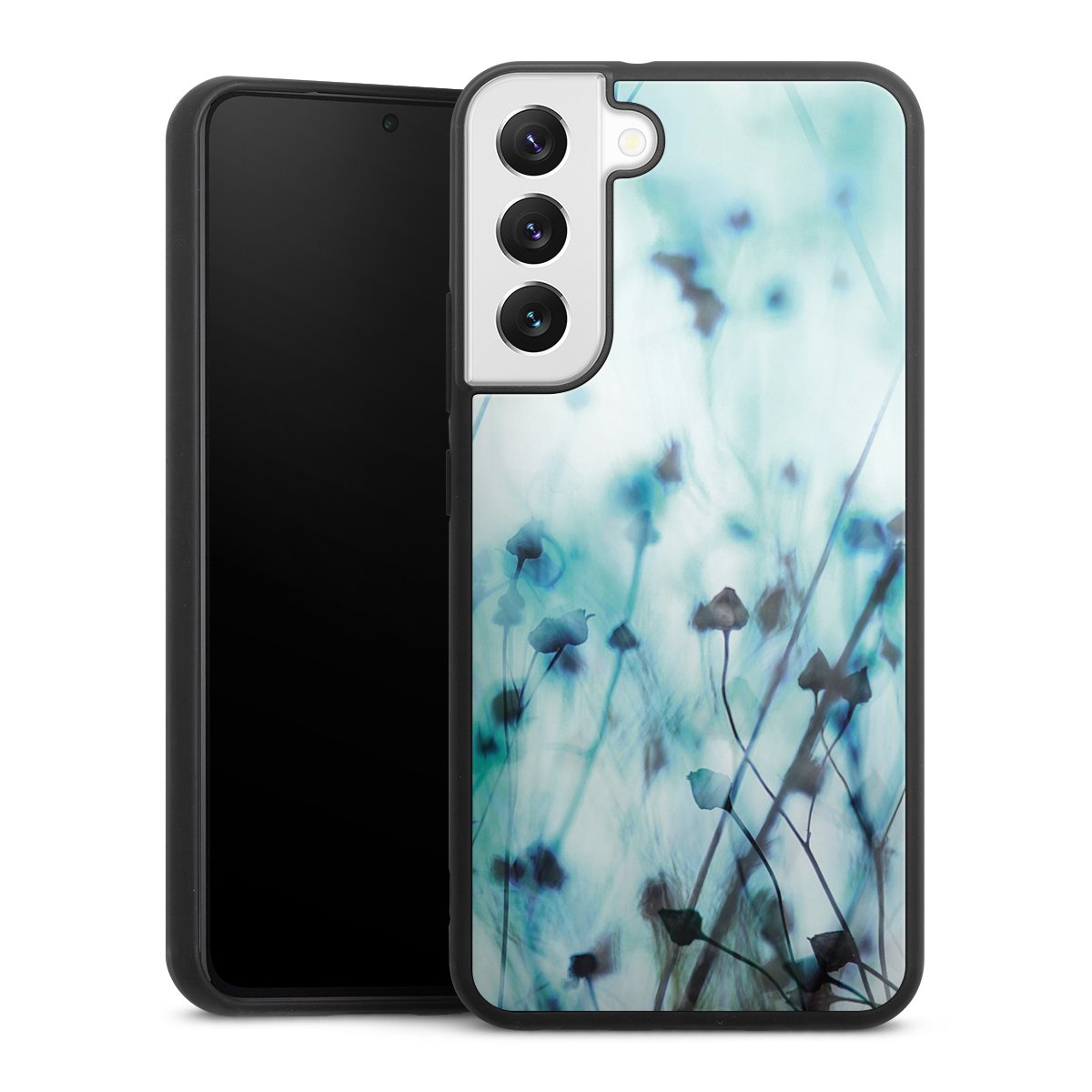We print your design on the back of the glass inlay and then connect it firmly to the silicone case ,so that nothing sticks out and everything looks like it was cast from one piece. In addition, the sturdy glass element is protected from scratches by an additional coating and ensures a slight reflection on the shiny print image.