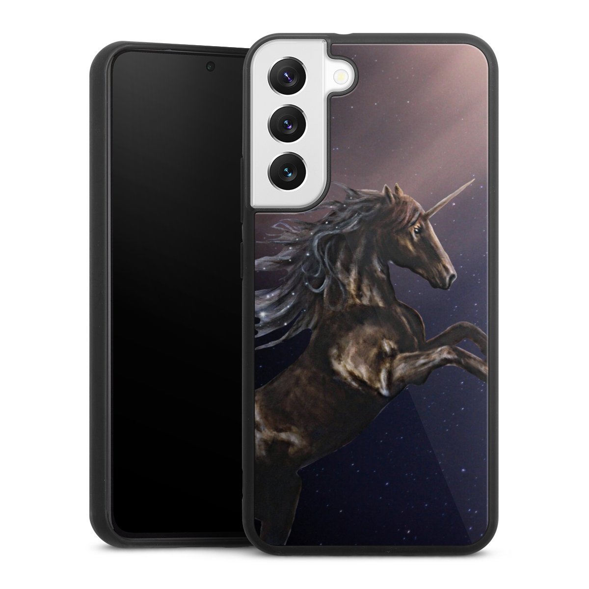 We print your design on the back of the glass inlay and then connect it firmly to the silicone case ,so that nothing sticks out and everything looks like it was cast from one piece. In addition, the sturdy glass element is protected from scratches by an additional coating and ensures a slight reflection on the shiny print image.