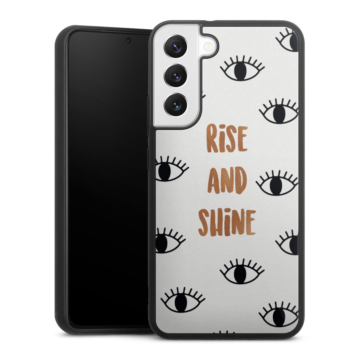 We print your design on the back of the glass inlay and then connect it firmly to the silicone case ,so that nothing sticks out and everything looks like it was cast from one piece. In addition, the sturdy glass element is protected from scratches by an additional coating and ensures a slight reflection on the shiny print image.
