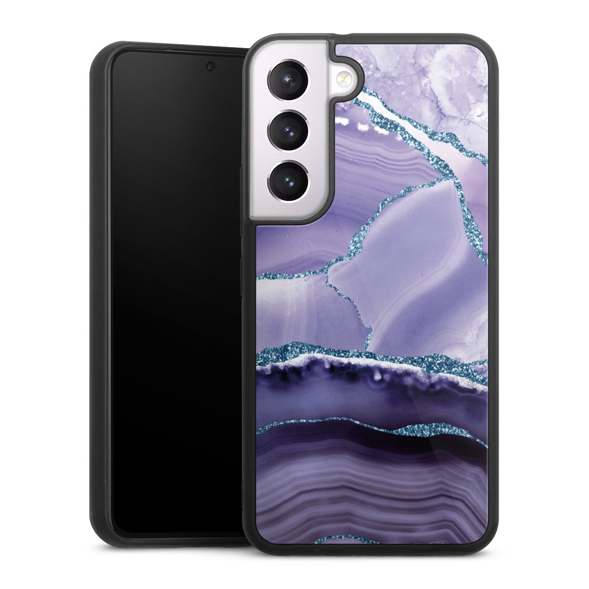 We print your design on the back of the glass inlay and then connect it firmly to the silicone case ,so that nothing sticks out and everything looks like it was cast from one piece. In addition, the sturdy glass element is protected from scratches by an additional coating and ensures a slight reflection on the shiny print image.