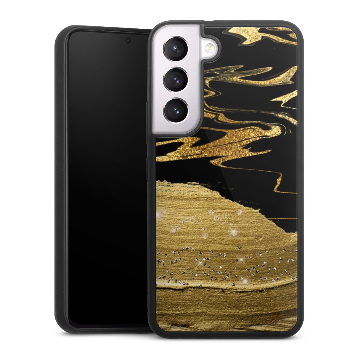 The contrast between the matte black TPU on the sides and the glossy glass surface not only makes the Gallery Case a fest for the eyes, but also a real treat for the hands: The glass gives the phone a pleasantly smooth back and the soft silicone edge provides the necessary grip.