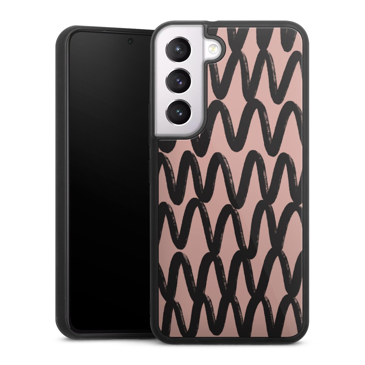 We print your design on the back of the glass inlay and then connect it firmly to the silicone case ,so that nothing sticks out and everything looks like it was cast from one piece. In addition, the sturdy glass element is protected from scratches by an additional coating and ensures a slight reflection on the shiny print image.