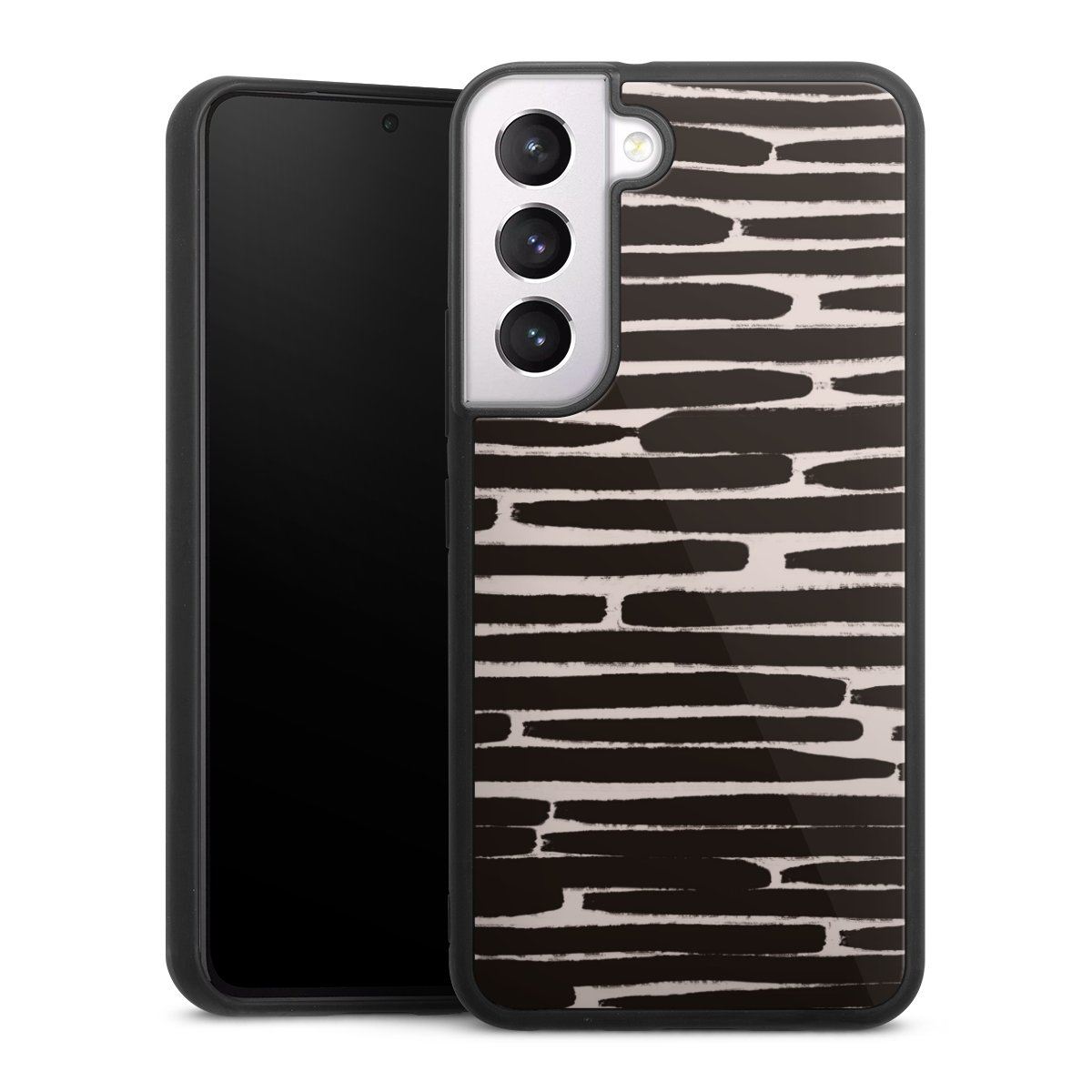 We print your design on the back of the glass inlay and then connect it firmly to the silicone case ,so that nothing sticks out and everything looks like it was cast from one piece. In addition, the sturdy glass element is protected from scratches by an additional coating and ensures a slight reflection on the shiny print image.