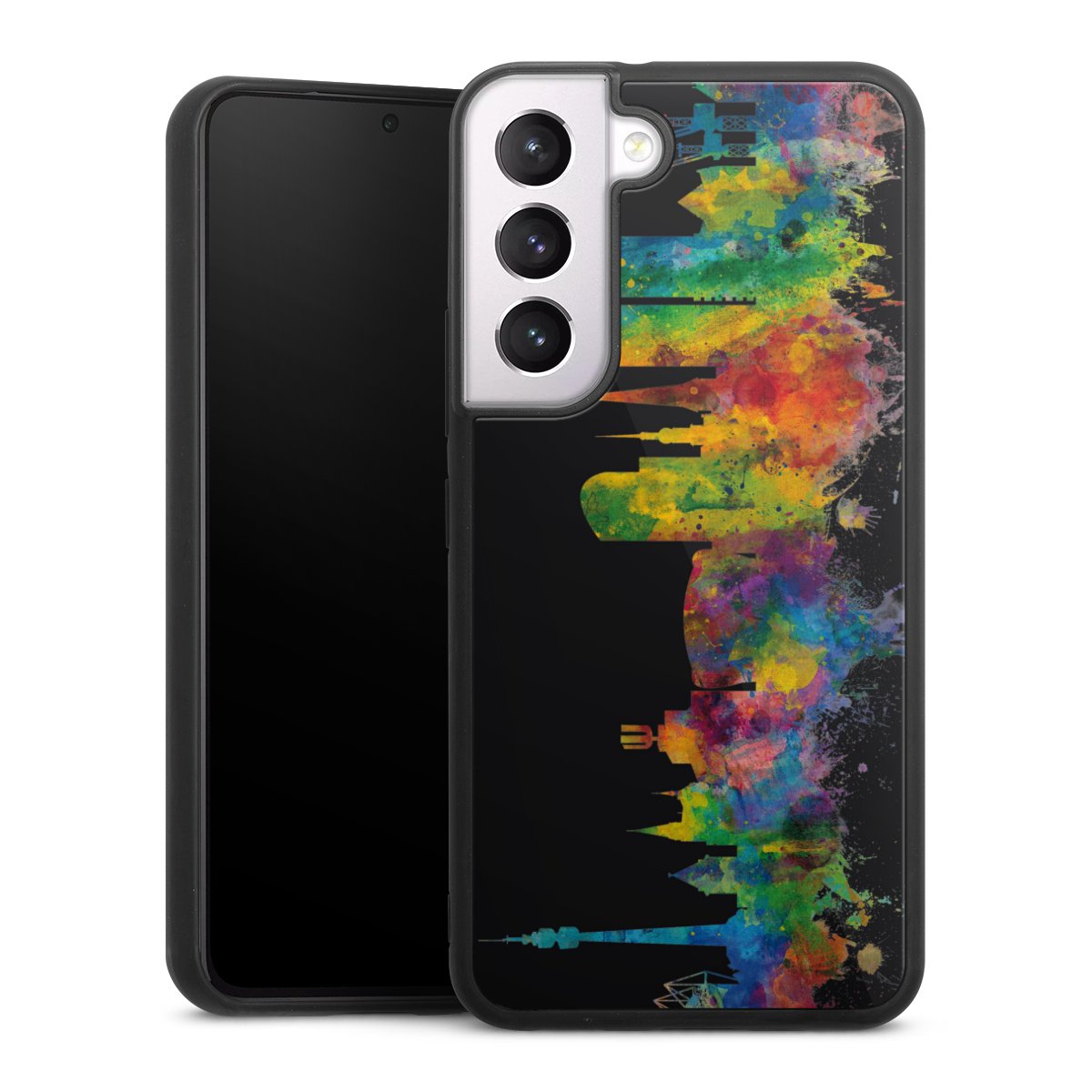 We print your design on the back of the glass inlay and then connect it firmly to the silicone case ,so that nothing sticks out and everything looks like it was cast from one piece. In addition, the sturdy glass element is protected from scratches by an additional coating and ensures a slight reflection on the shiny print image.