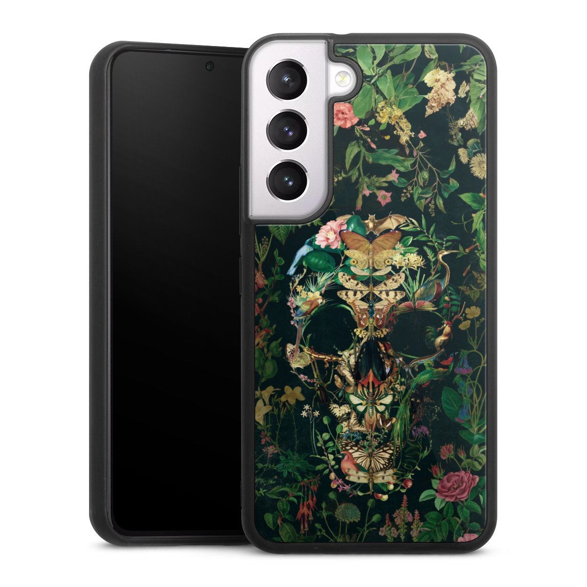 We print your design on the back of the glass inlay and then connect it firmly to the silicone case ,so that nothing sticks out and everything looks like it was cast from one piece. In addition, the sturdy glass element is protected from scratches by an additional coating and ensures a slight reflection on the shiny print image.