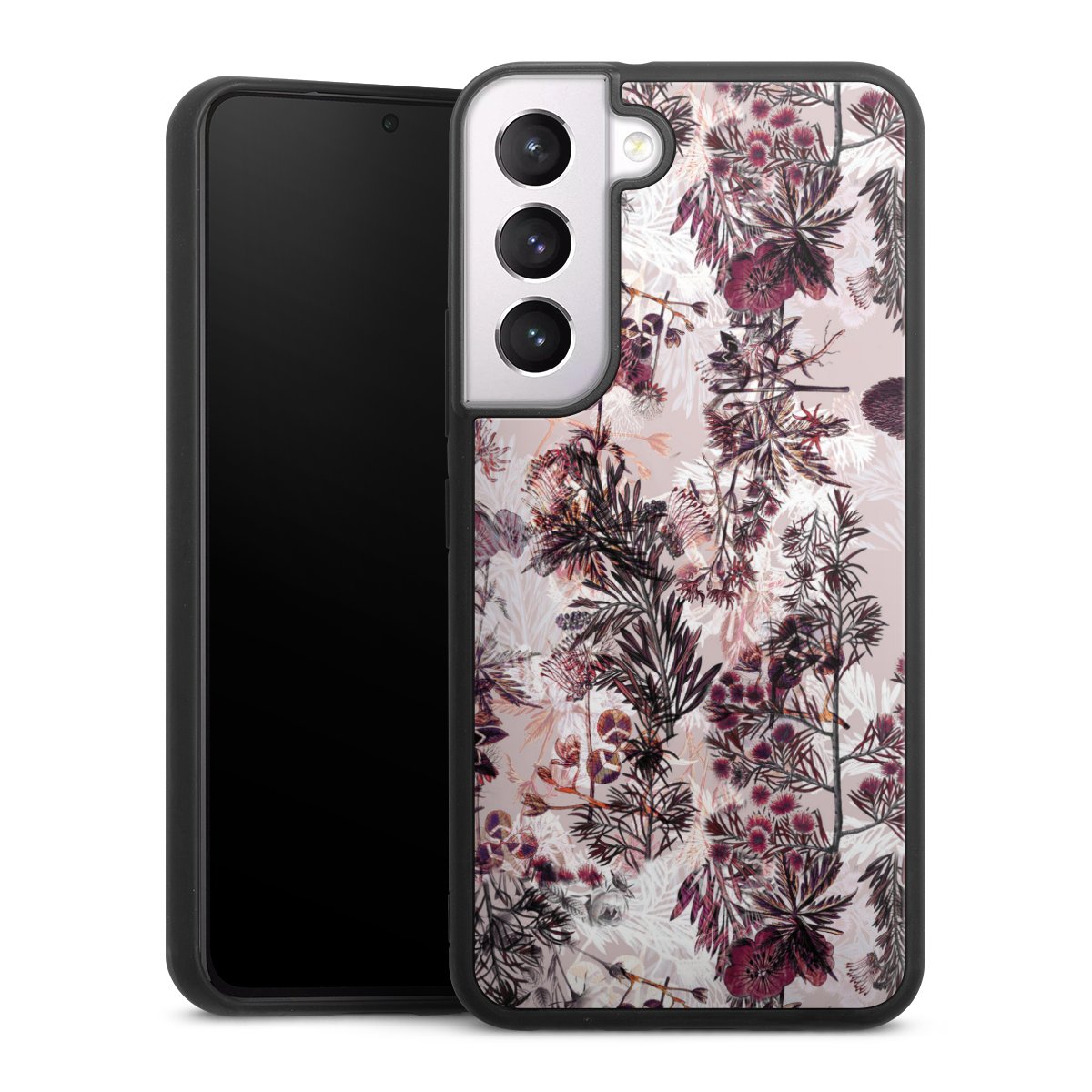 We print your design on the back of the glass inlay and then connect it firmly to the silicone case ,so that nothing sticks out and everything looks like it was cast from one piece. In addition, the sturdy glass element is protected from scratches by an additional coating and ensures a slight reflection on the shiny print image.