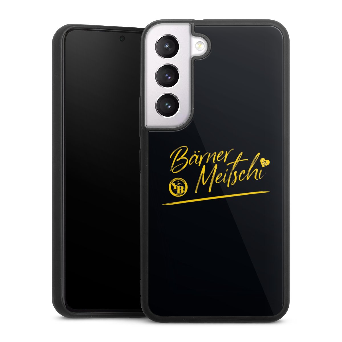 We print your design on the back of the glass inlay and then connect it firmly to the silicone case ,so that nothing sticks out and everything looks like it was cast from one piece. In addition, the sturdy glass element is protected from scratches by an additional coating and ensures a slight reflection on the shiny print image.