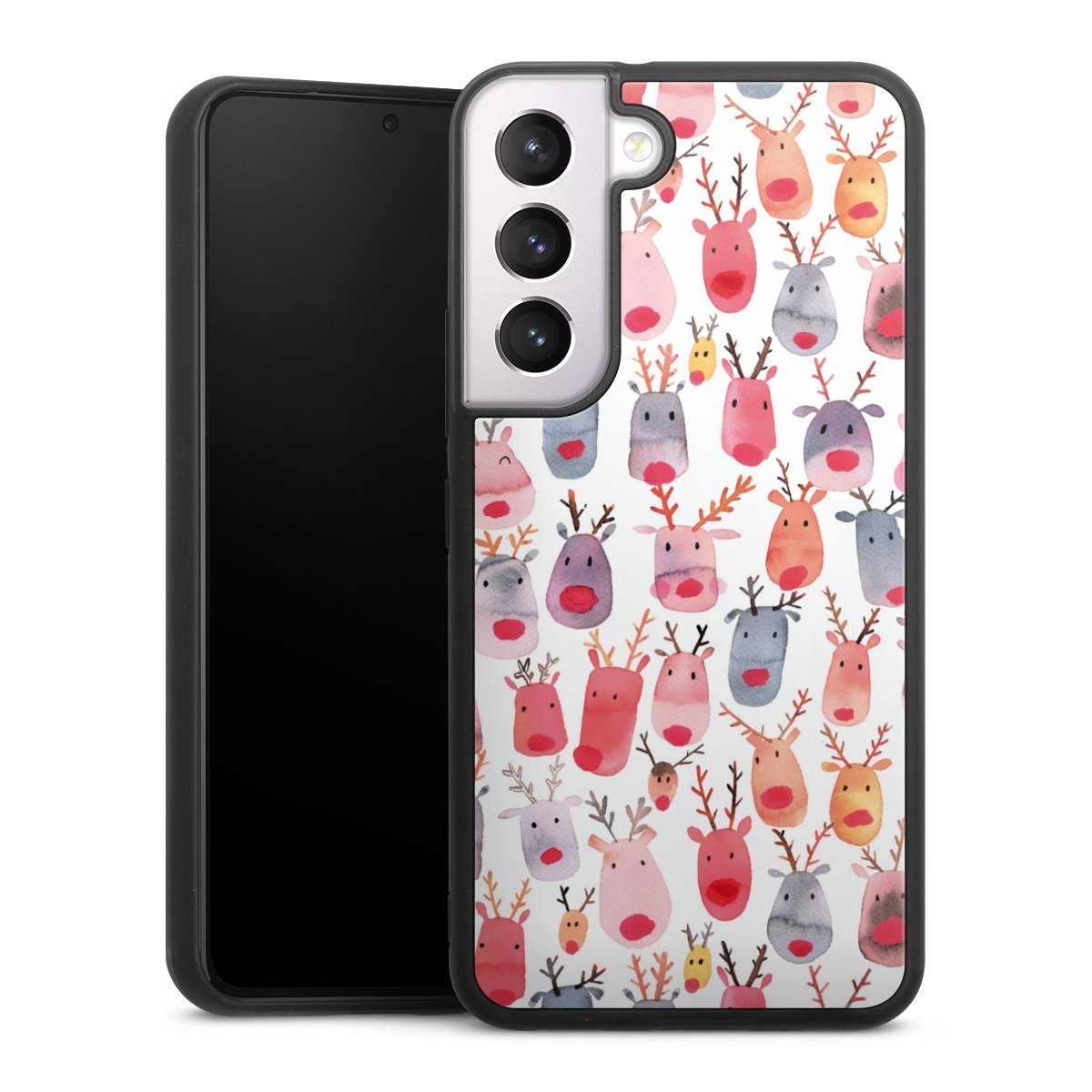 We print your design on the back of the glass inlay and then connect it firmly to the silicone case ,so that nothing sticks out and everything looks like it was cast from one piece. In addition, the sturdy glass element is protected from scratches by an additional coating and ensures a slight reflection on the shiny print image.