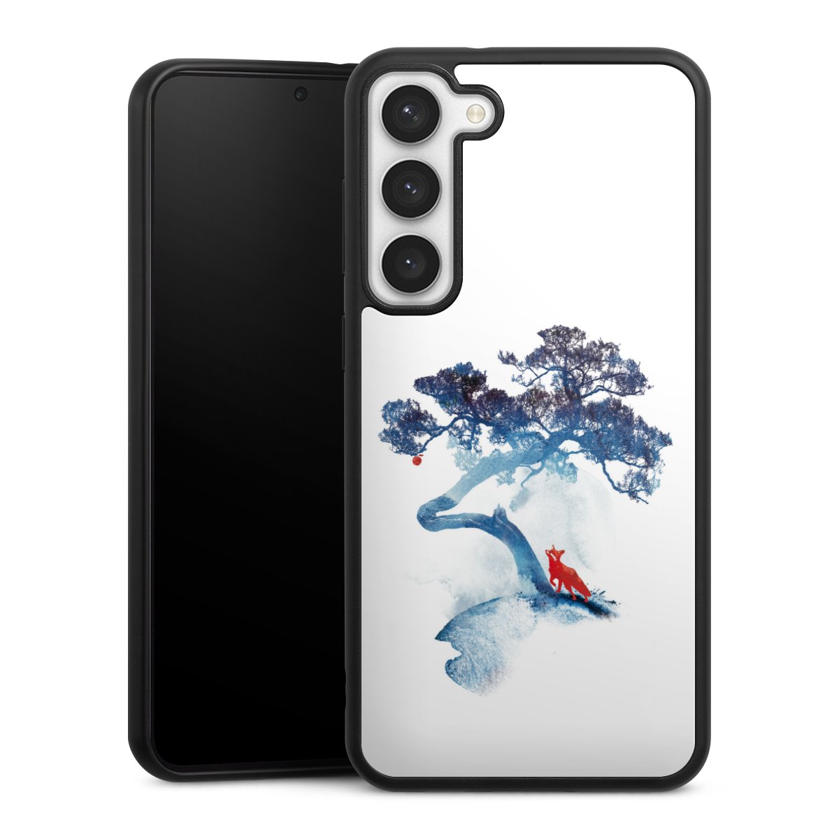 We print your design on the back of the glass inlay and then connect it firmly to the silicone case ,so that nothing sticks out and everything looks like it was cast from one piece. In addition, the sturdy glass element is protected from scratches by an additional coating and ensures a slight reflection on the shiny print image.