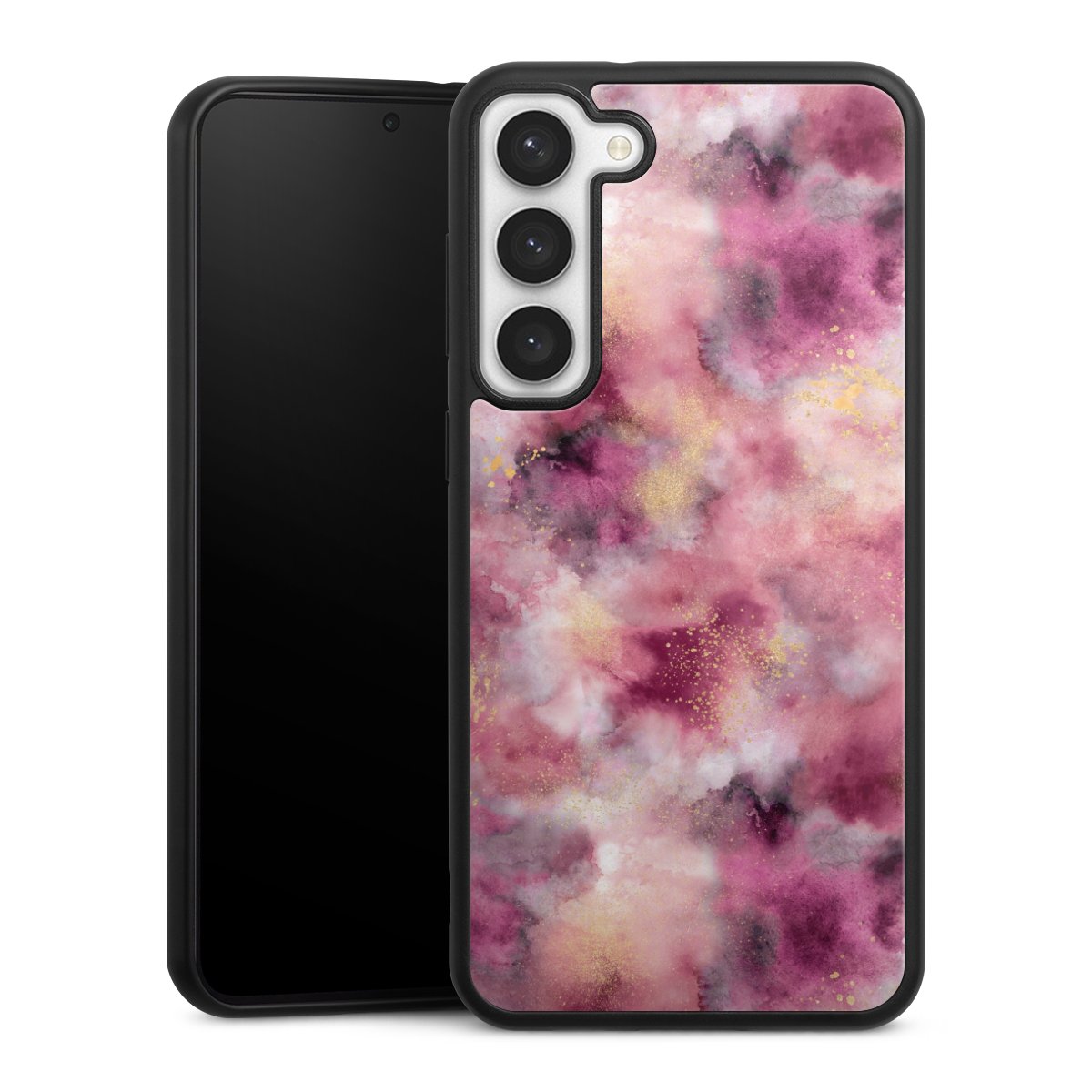 We print your design on the back of the glass inlay and then connect it firmly to the silicone case ,so that nothing sticks out and everything looks like it was cast from one piece. In addition, the sturdy glass element is protected from scratches by an additional coating and ensures a slight reflection on the shiny print image.