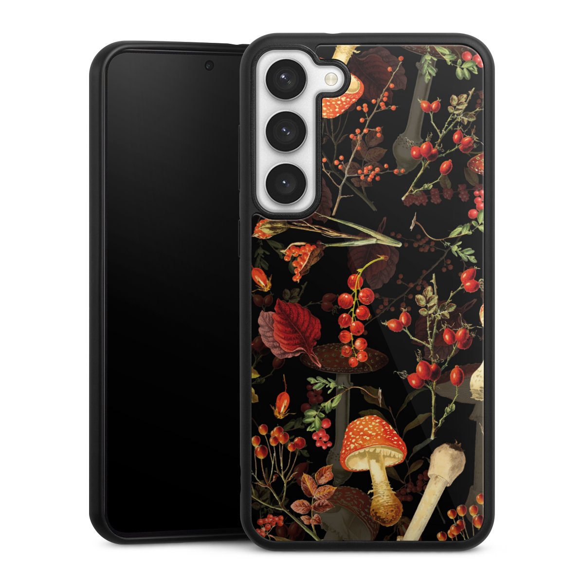 We print your design on the back of the glass inlay and then connect it firmly to the silicone case ,so that nothing sticks out and everything looks like it was cast from one piece. In addition, the sturdy glass element is protected from scratches by an additional coating and ensures a slight reflection on the shiny print image.